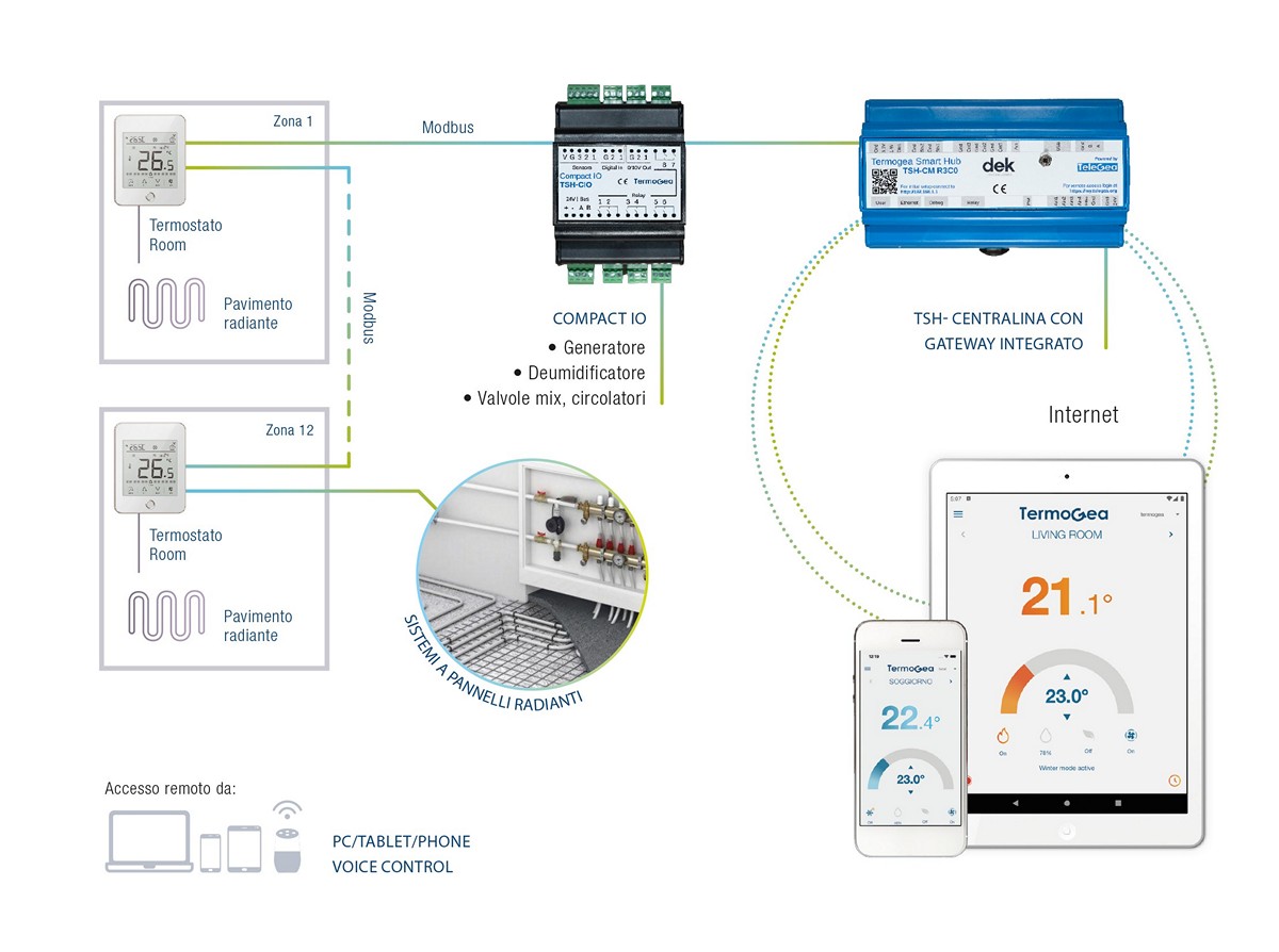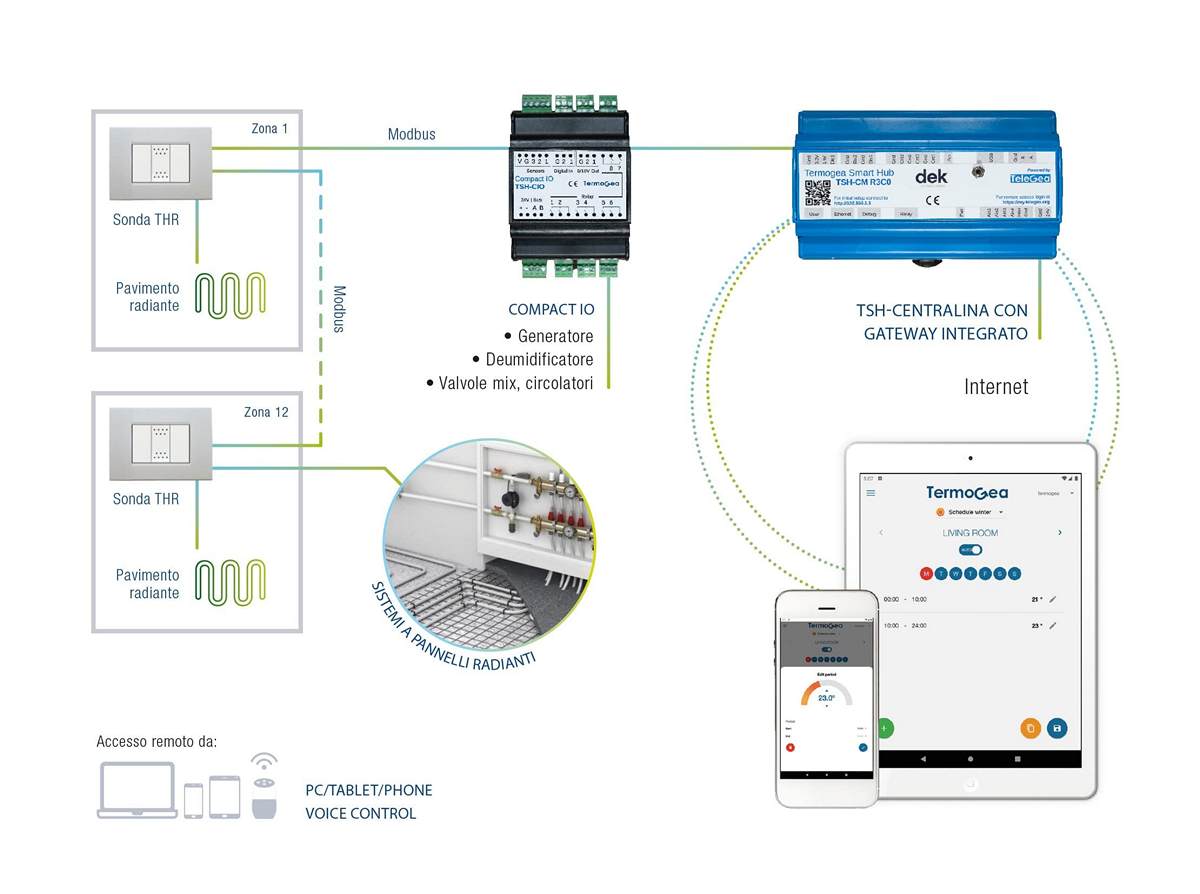 - Management of up to 12 zones with a single control unit (TSH), up to 20 zones with the TSH EVO version.