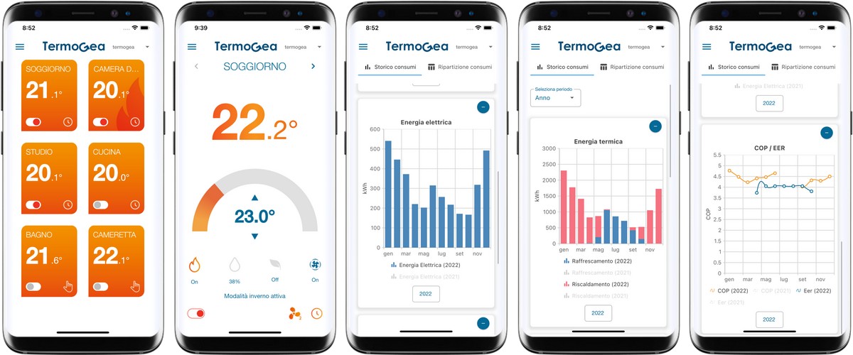 Le centraline Termogea Smart Hub e Smart Central sono dotate di un gateway integrato per la connessione via internet al Cloud Termogea. Sono pertanto predisposte per consentire il collegamento da remoto all’impianto. L’accesso al Cloud ha diversi livelli di autorizzazione per l’amministratore di condominio, il manutentore e l’Utente finale. Amministratore e manutentore possono intervenire da remoto per verifiche e operazioni di manutenzione. Gli utenti finali possono intervenire sulla termoregolazione dal proprio smartphone attraverso l’APP Termogea per leggere, modificare e programmare la temperatura nelle varie zone. E’ anche possibile monitorare i consumi del generatore attravero la centralina Smart Hub.