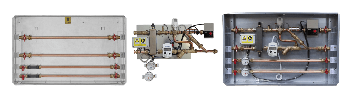 | Cassetta per satellite HIGH. | SAT-High-CT | Cassetta di contenimento con valvole a sfera e tubazioni di attesa. |