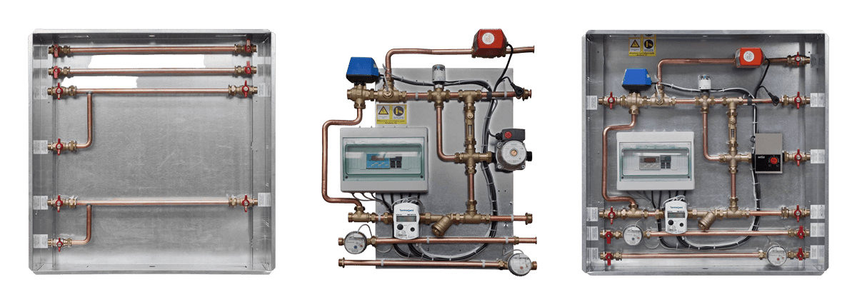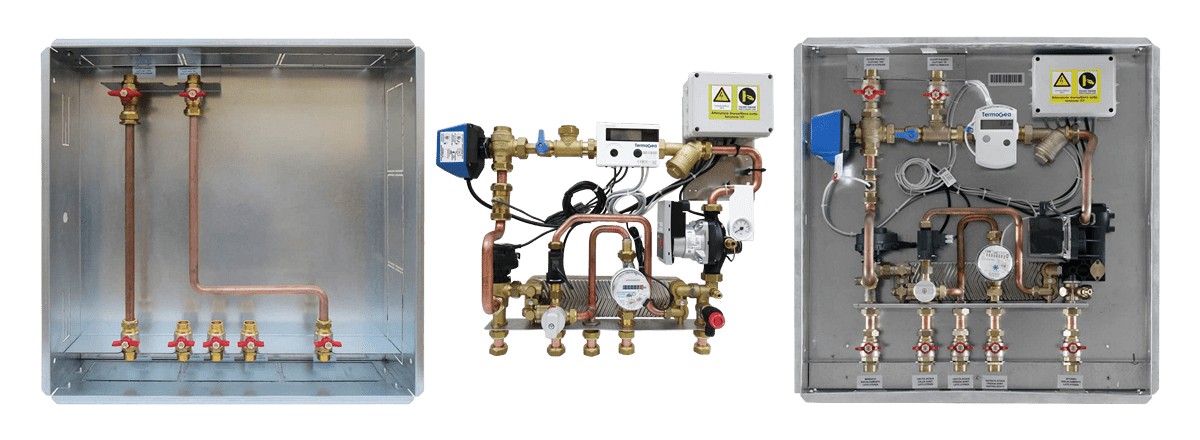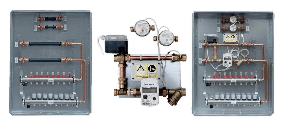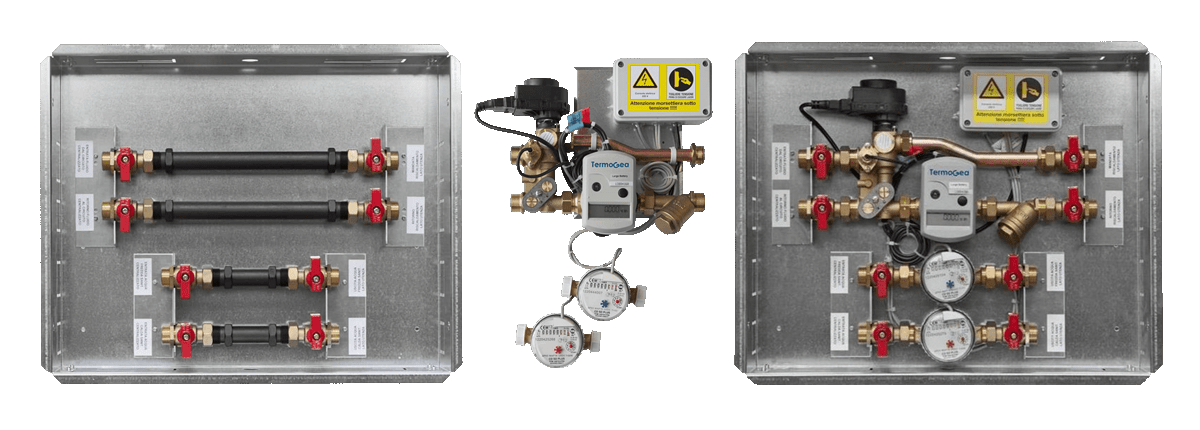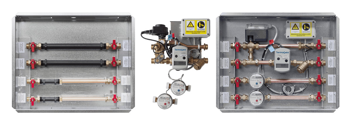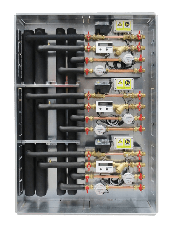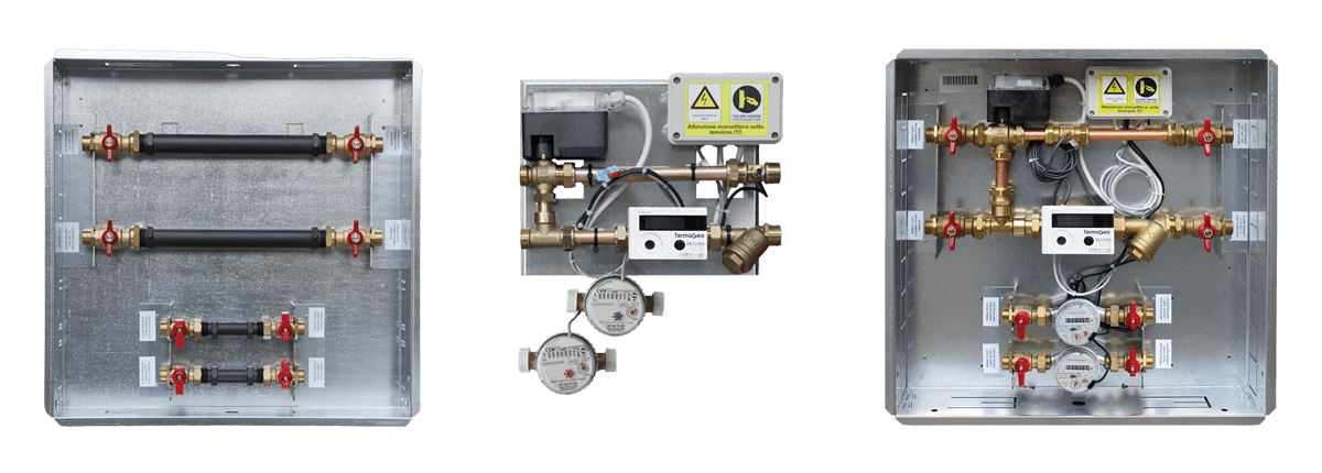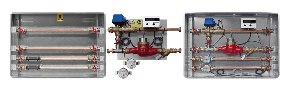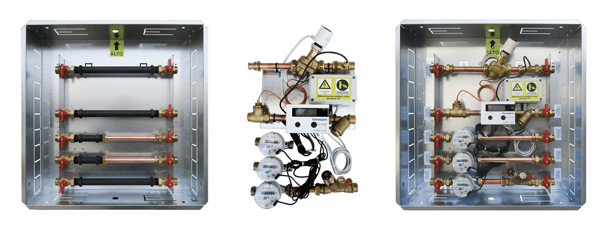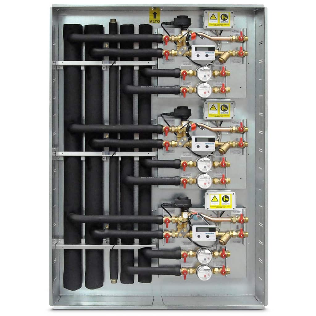 Multi-user box for the measurement of thermal energy and hot and cold sanitary water.