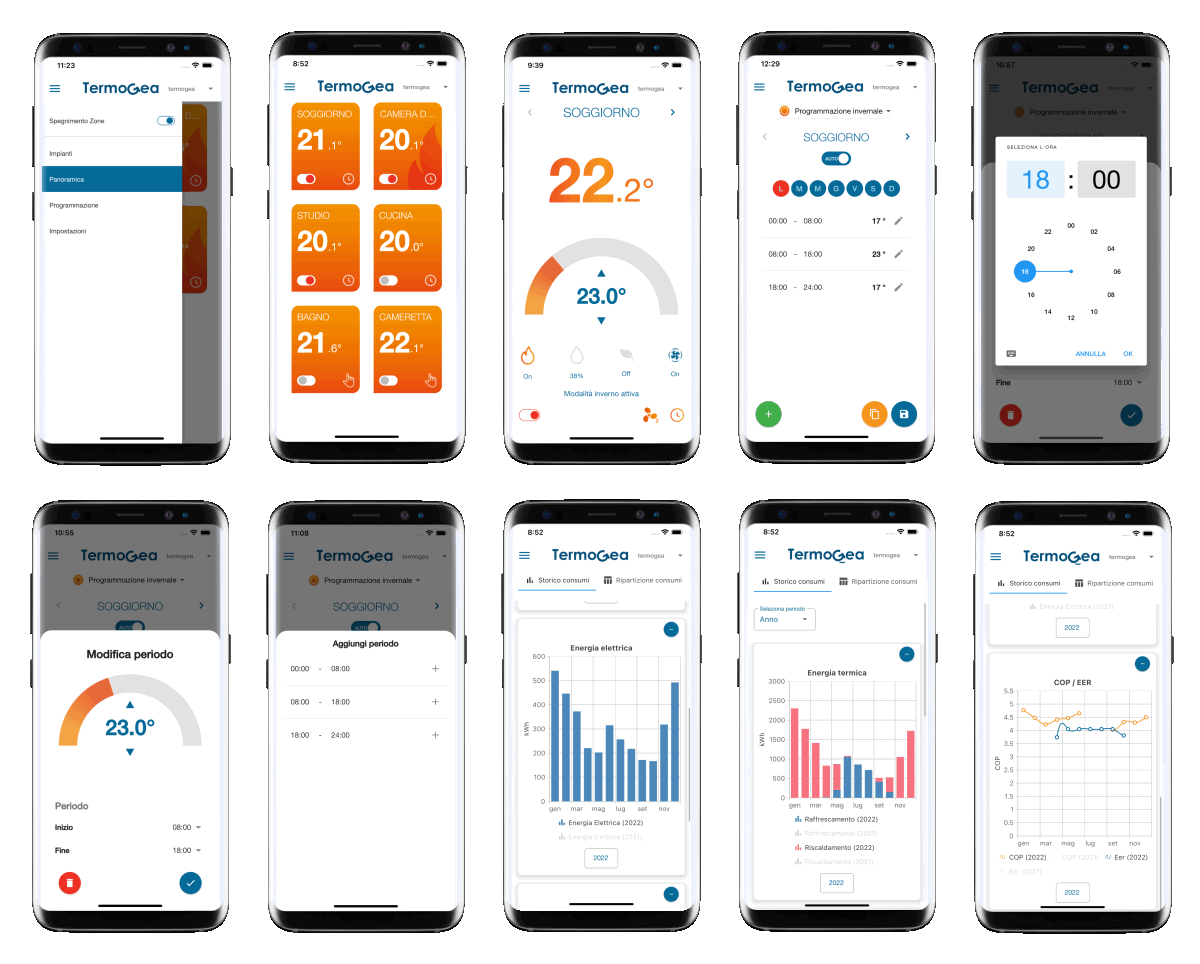 Termogea APP turns your phone into a personal digital thermostat. This way, you can control your home at any time and from anywhere. The control panel for the heating and cooling system is your smartphone.