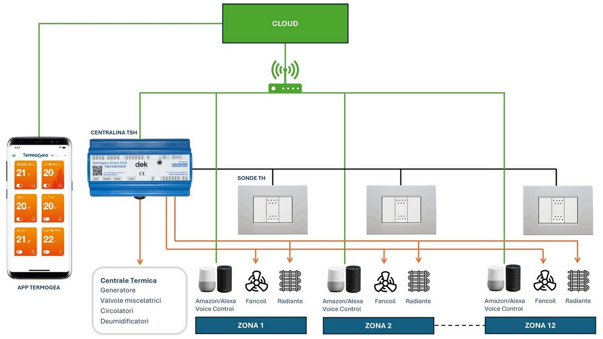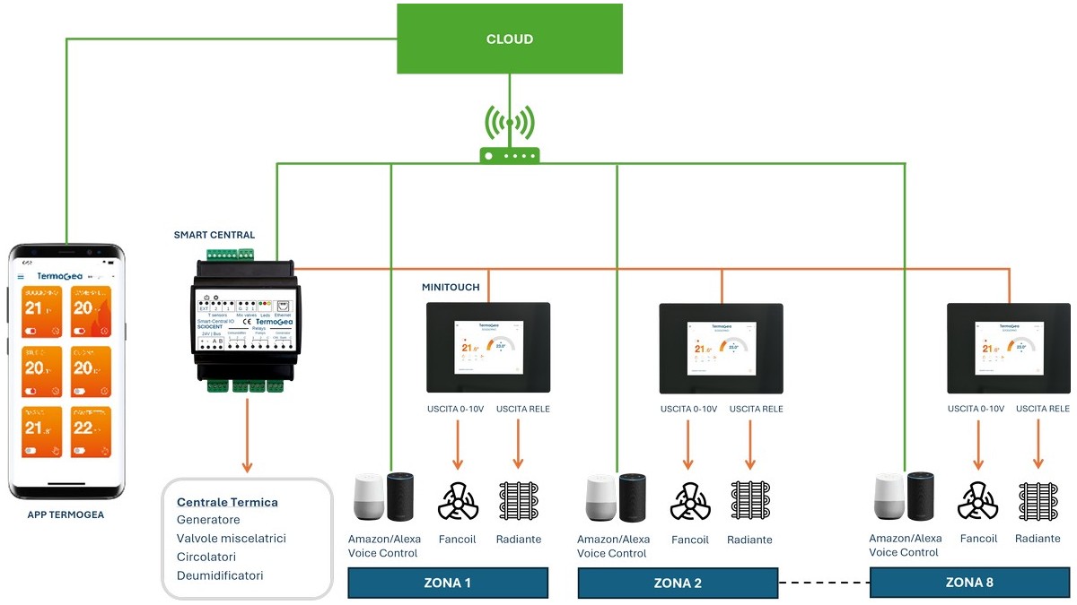 - Con L’APP Termogea si controllano sia in locale che da remoto entrambi gli impianti radiante e fancoil.