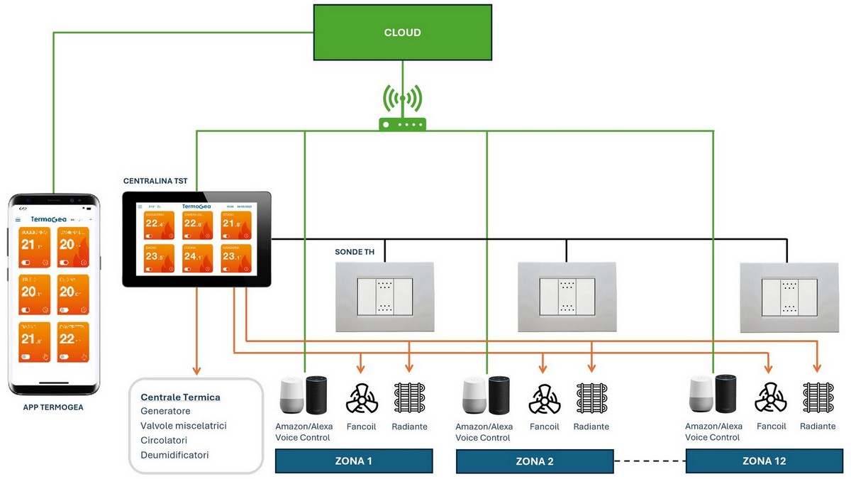 Termoregolazione solo da Smartphone con Sonde ambiente collocate in ogni zona.